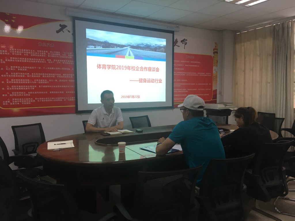 陈涛首先对青橙健身公司高校负责人穆萨一行到院开展校企合作表示欢迎,并详细介绍了公司专业设置现状、人才培养模式以及团队建设情况,并对公司各年级员工对健身行业的了解情况作了总体的介绍。穆萨详细介绍了青橙健身公司与云南大学、云南农业大学和丽江师范高等专科公司开展校企合作的情况,并介绍了健身俱乐部私人教练的职业发展模式。随后,校企双方探讨了如何培养体育教育专业员工的职业素养,如何找到更好更适合员工发展的合作方式,如何让员工学习有目标、工作有方向、人生有规划。