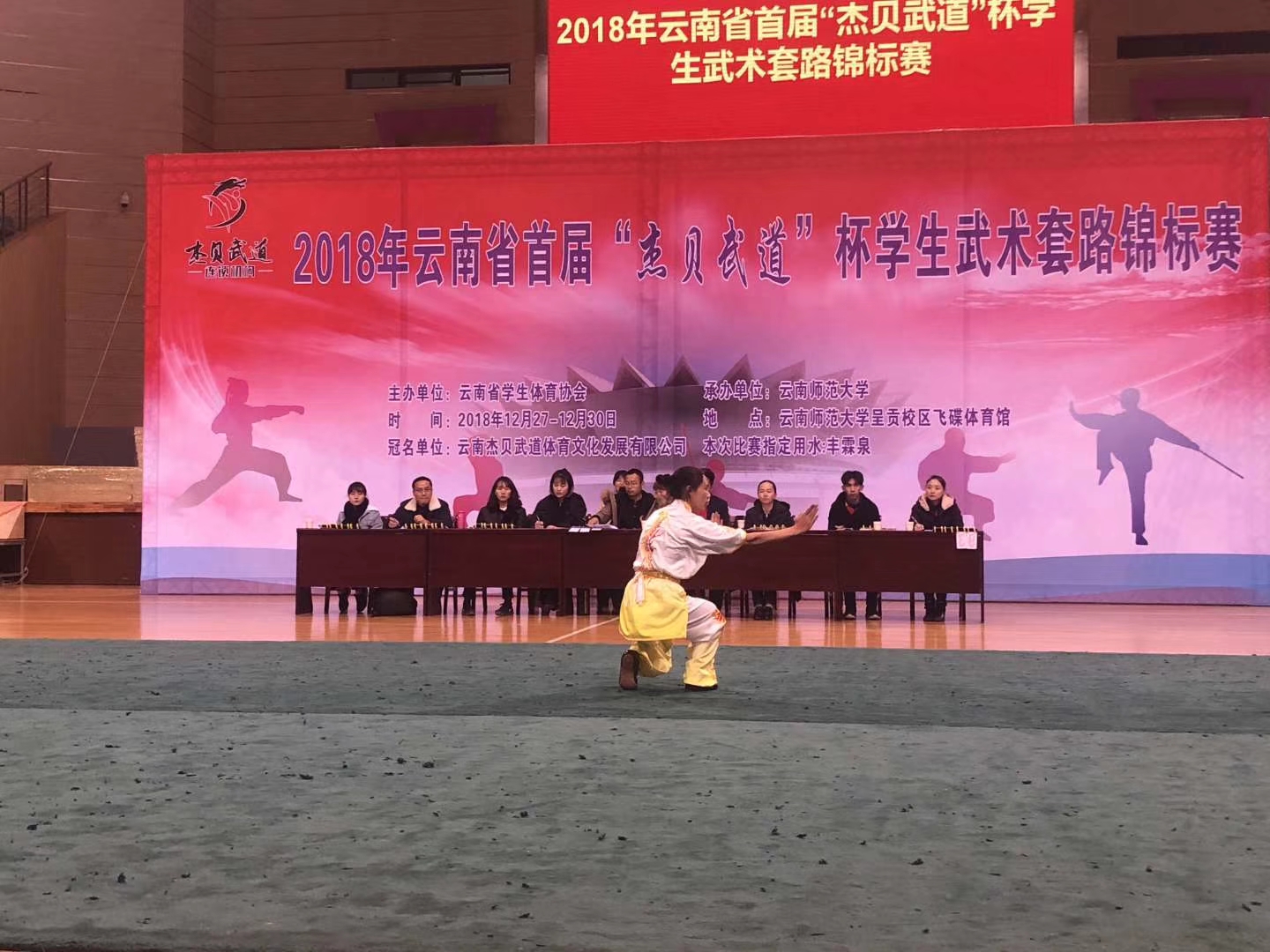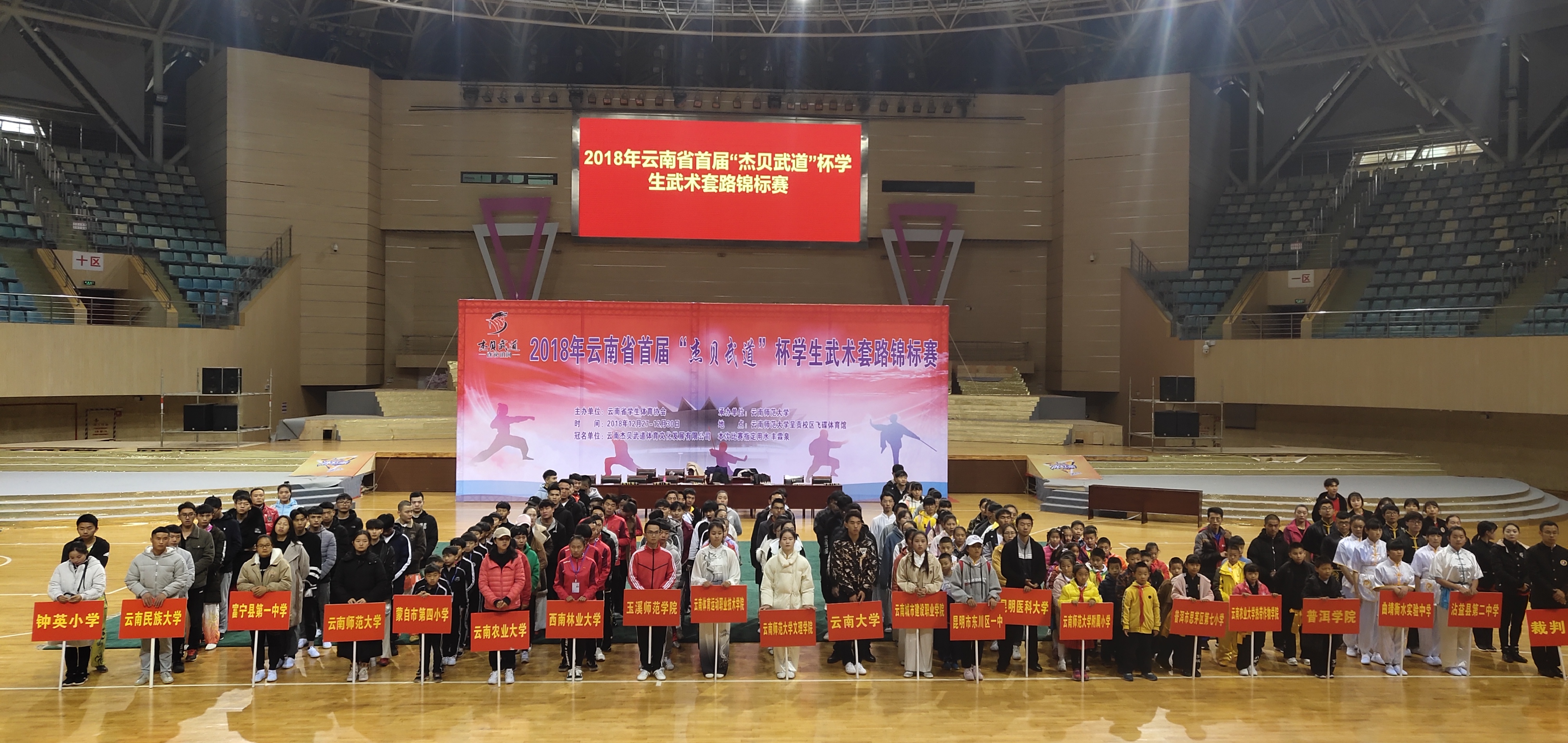 云南省第一届员工武术锦标赛,于2018年12月27日至30日在呈贡师大飞碟体育馆举行。首届举办的老员工武术比赛吸引了来自威廉体育官方网站、云南大学、云南师范大学、云南民族大学、云南农业大学、云南体育运动职业技术公司等省内各地13所高校参加,威廉体育williamhill由领队韦群杰老师,教练段静、关鹏、张洁莹三位老师组成,派出公司本科生7男6女共13名同学参加本次比赛28个单项1项集体项目的角逐。