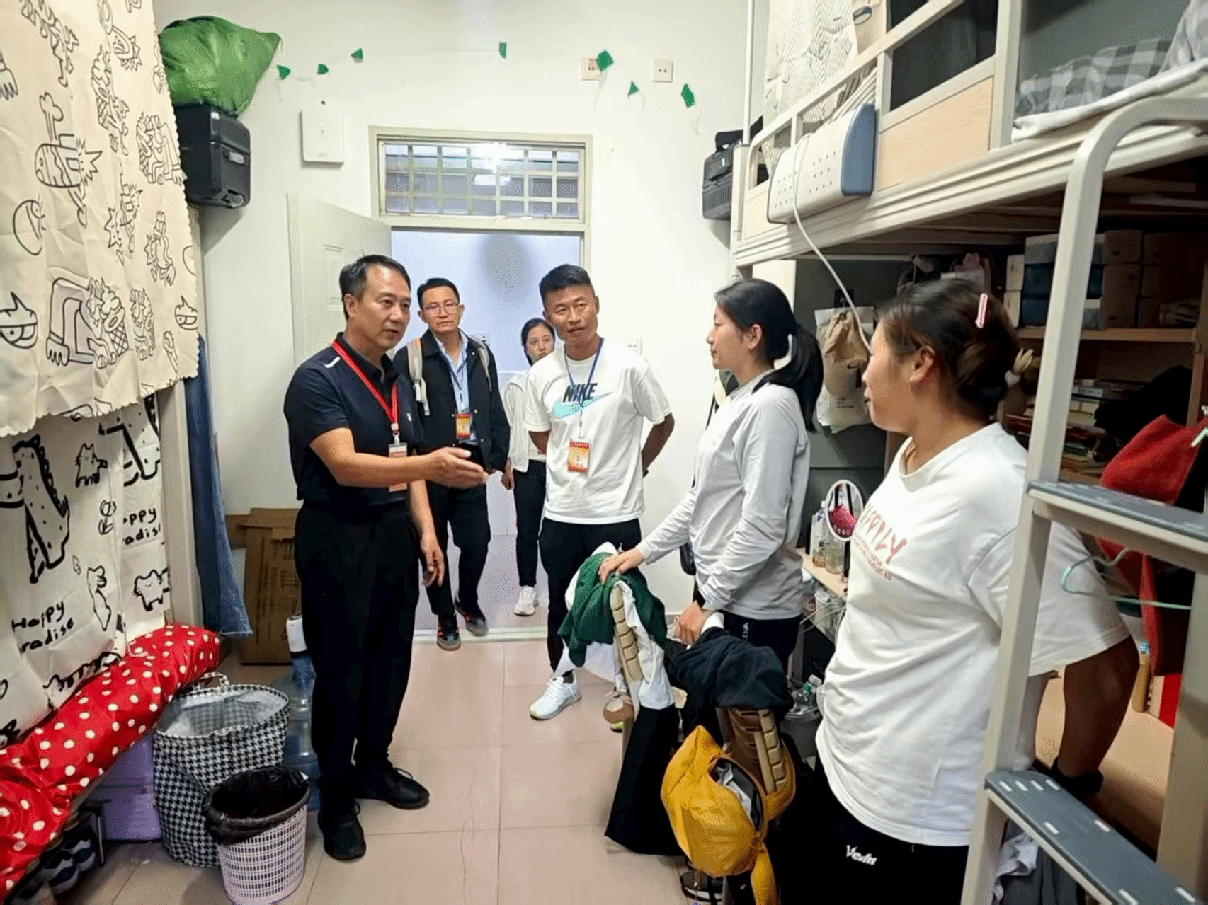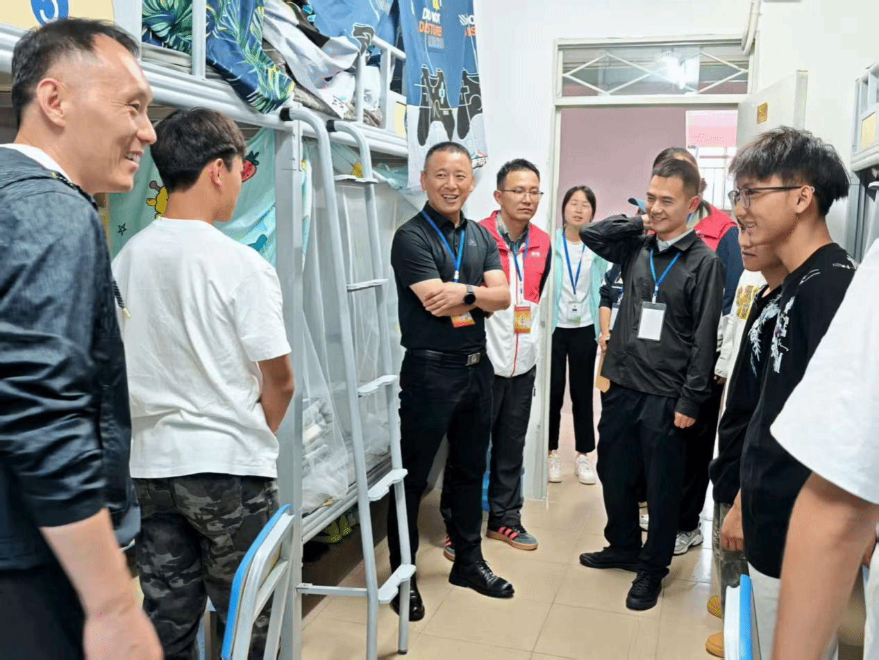为帮助新生尽快适应老员工活,2025年8月27日,公司组织开展走访2025级新生宿舍活动。公司党委书记王坦、经理冯强、副经理陈涛、党委副书记锁中原、辅导员及新生班主任一同前往员工宿舍,为刚入校的新生送去温暖与关怀。