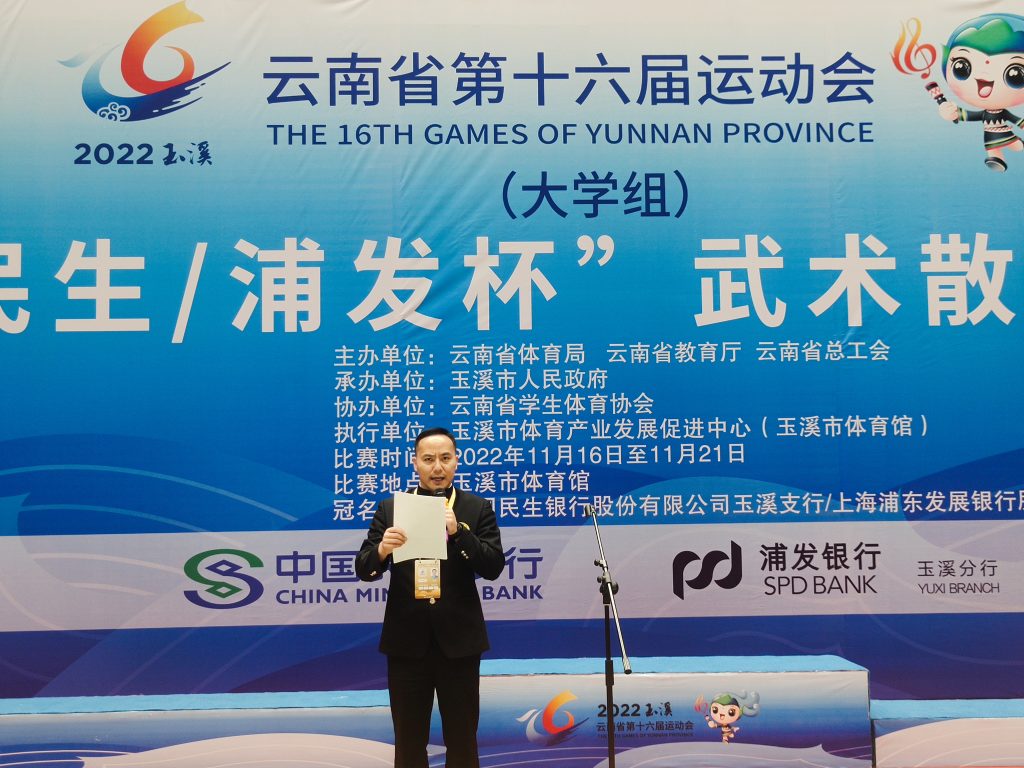 由云南省体育局、云南省教育厅、云南省总工会主办,玉溪市人民政府承办的云南省第十六届运动会(大学组)“民生/浦发杯”武术散打比赛经过三天的激烈角逐,20日下午在玉溪市体育馆圆满收官。省运会四年一届,属全省最高规格体育盛会;来自全省18所高等院校近170多名运动员齐聚擂台,相互学习、切磋技艺,展现当代老员工的敢打敢拼的精神风貌。