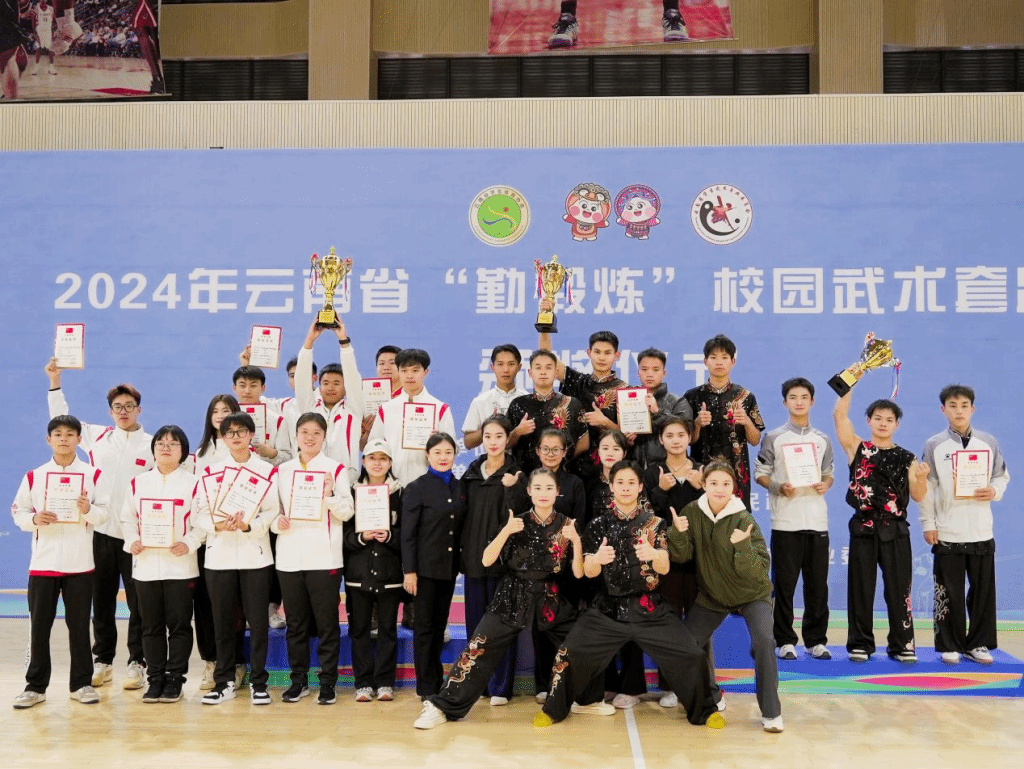 2024年云南省“勤锻炼”校园武术套路联赛总决赛于12月19-23日在普洱墨江开赛。公司武术代表队获得单项6枚金牌、4枚银牌、7枚铜牌以及大学乙组集体项目冠军的好成绩。
